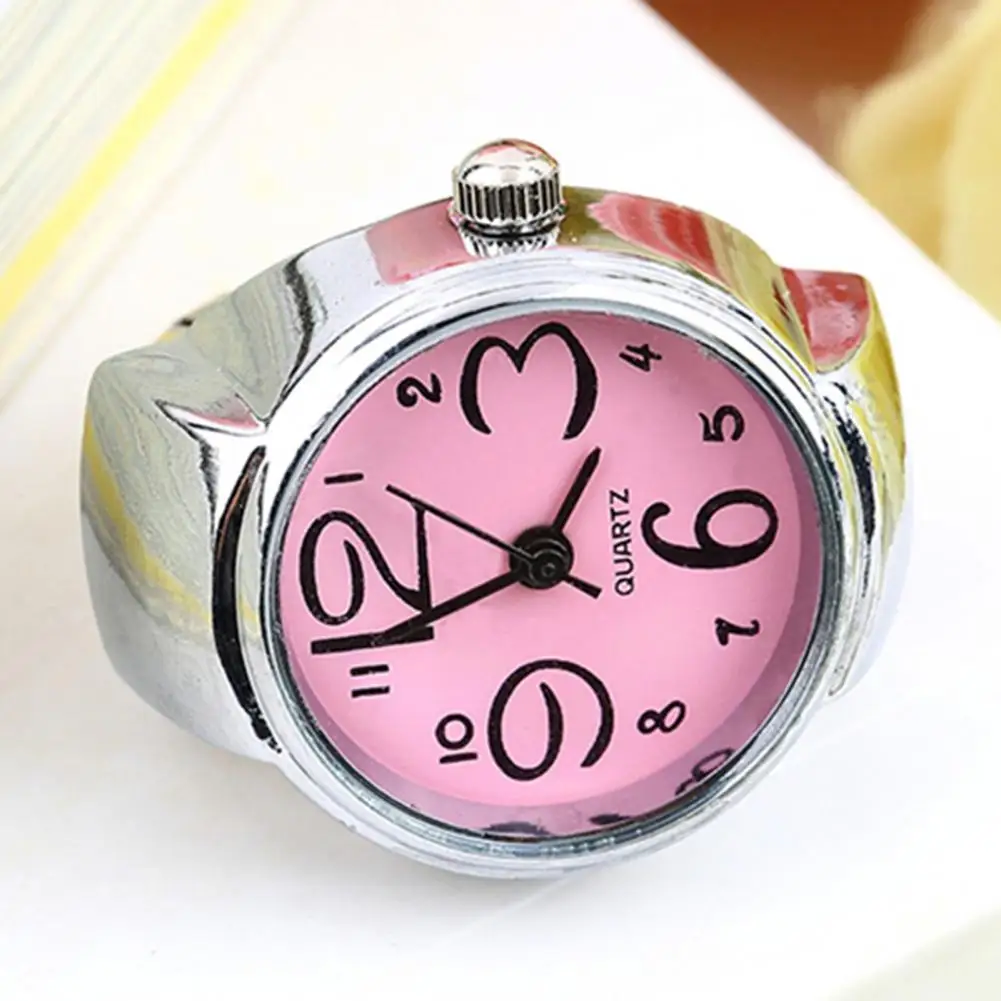Кольцо на палец для женщиндевочек, гладкий стальной круглый циферблат, эластичное кварцевое кольцо на палец с часами, Женское кольцо, мини-размер, подарок для студента