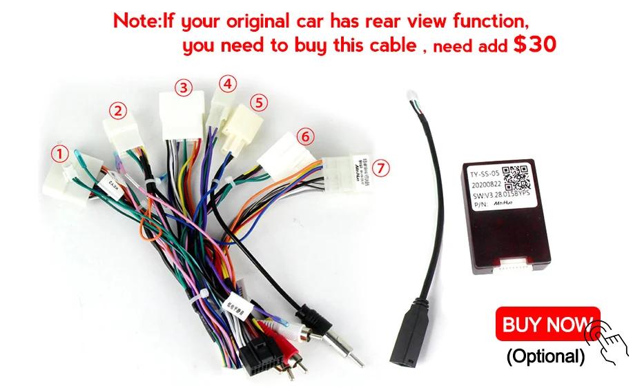 Примечание: Если ваш оригинальный автомобиль имеет функцию заднего вида, вам нужно купить следующий кабель с canbus, необходимо добавить $30