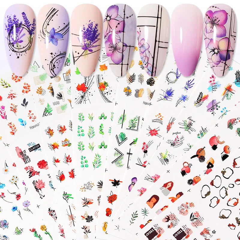Абстрактные наклейки для ногтей для женщин, личико, цветок, лист, самодельные Слайдеры для ногтей, надписи для маникюра, украшения для ногтей, переводные наклейки для ногтей