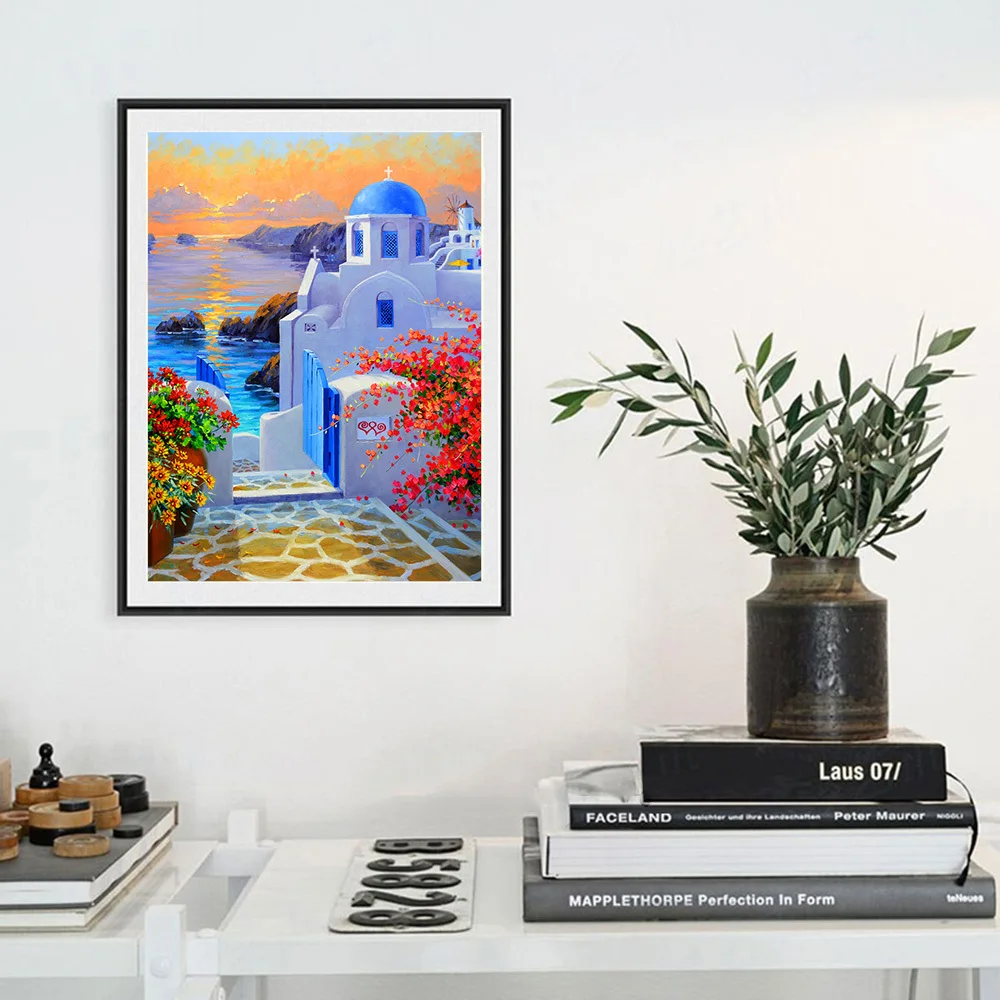AZQSD 5D алмазная вышивка здание приморский город мозаика алмазная живопись пейзаж Стразы для рукоделия украшение дома