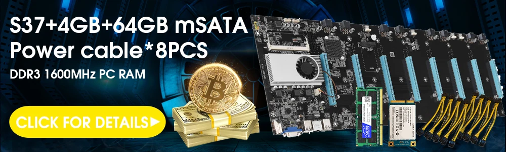 1 * S37 Mining mматеринская плата, 1*128 ГБ SATA SSD, 1*8 ГБ DDR3 1600 МГц RAM,