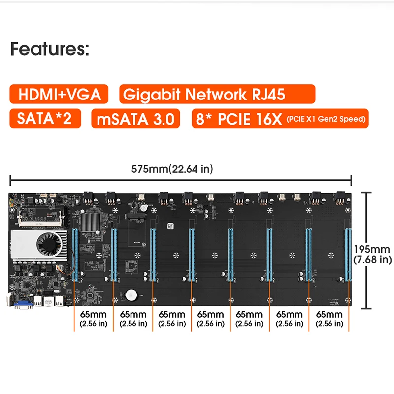 Расширяемый порт: 8 * PCIE 16X,8*6pin PCIE X16 разъем питания, HDMI-совместимый + VGA