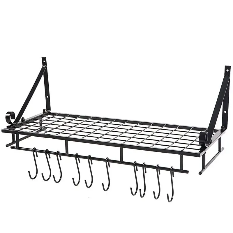Новая кухонная настенная полка для кастрюль и сковородок, держатель для посуды, полка-вешалка с крючком, кухонная полка для хранения, органайзер для посуды