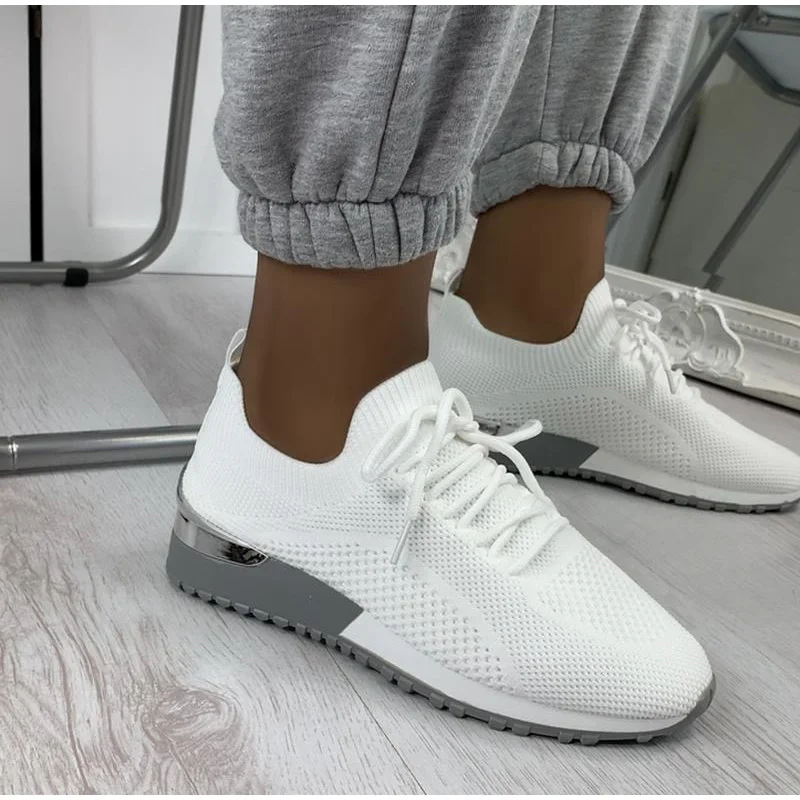 Женские кроссовки, дышащая трикотажная женская обувь, однотонная женская обувь, прогулочная обувь, модная летняя женская обувь на плоской подошве, новинка 2021