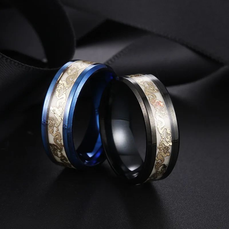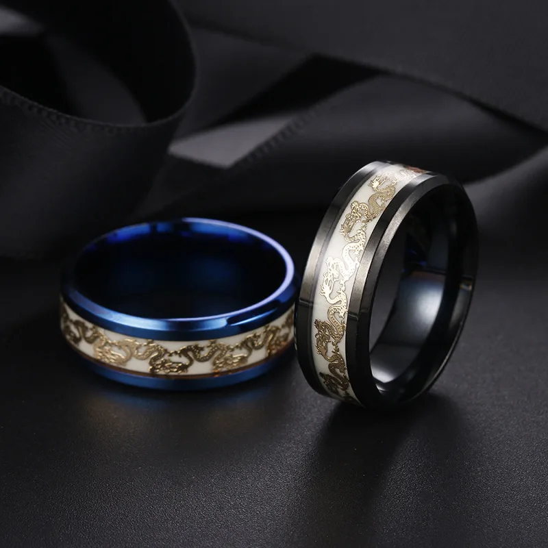 Светящиеся кольца в виде дракона для мужчин, черные, золотые, синие...