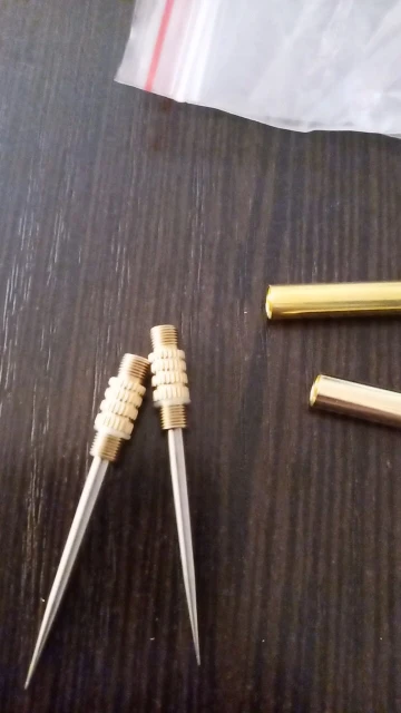 В Волгоград пришло за 2 недели в совместной посылке. Соответствует описанию. Определить на "глазок", Титан это или Сталь...невозможно. Длина 6 см. (как раз в длину моего мизинца). В собранном виде - 9,5 см. Будете раскручивать...осторожно, не потеряйте силиконовое кольцо. Оно лежит внутри тубы. Сама игла - белый металл, не шлифованный, чувствуется шероховатая поверхность. Ровная, Острая, но не так, как швейная иголка. Чтобы проколоть лист бумаги, надо приложить небольшое усилие. Купил, чтобы использовать как шило.
