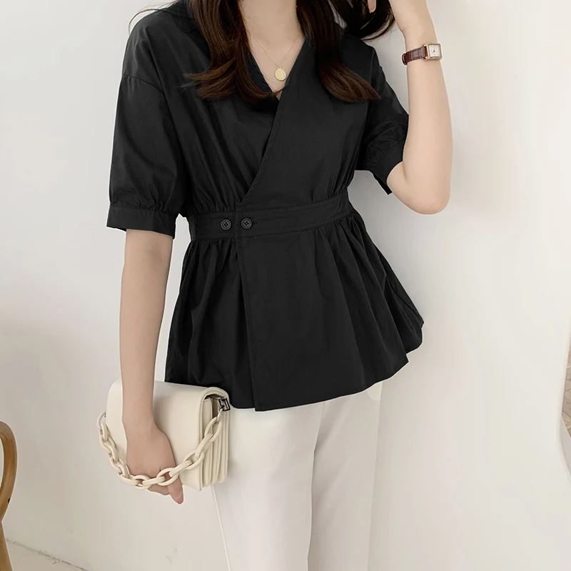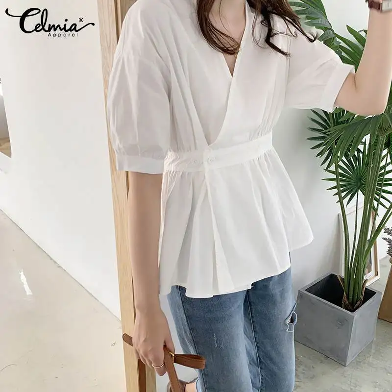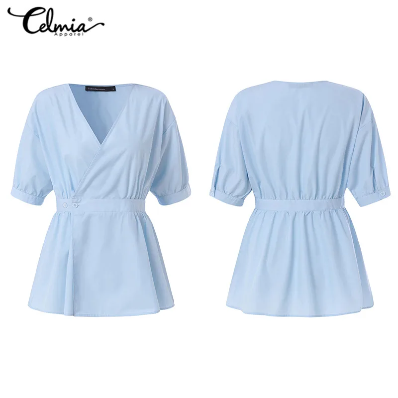Женские топы с баской Celmia 2021, летняя модная блузка с коротким ...
