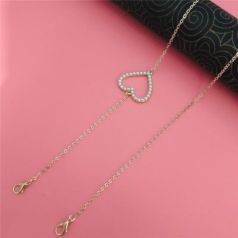 Цепочка для очков Женская, цепочка с жемчужными бусинами, сердечко,...