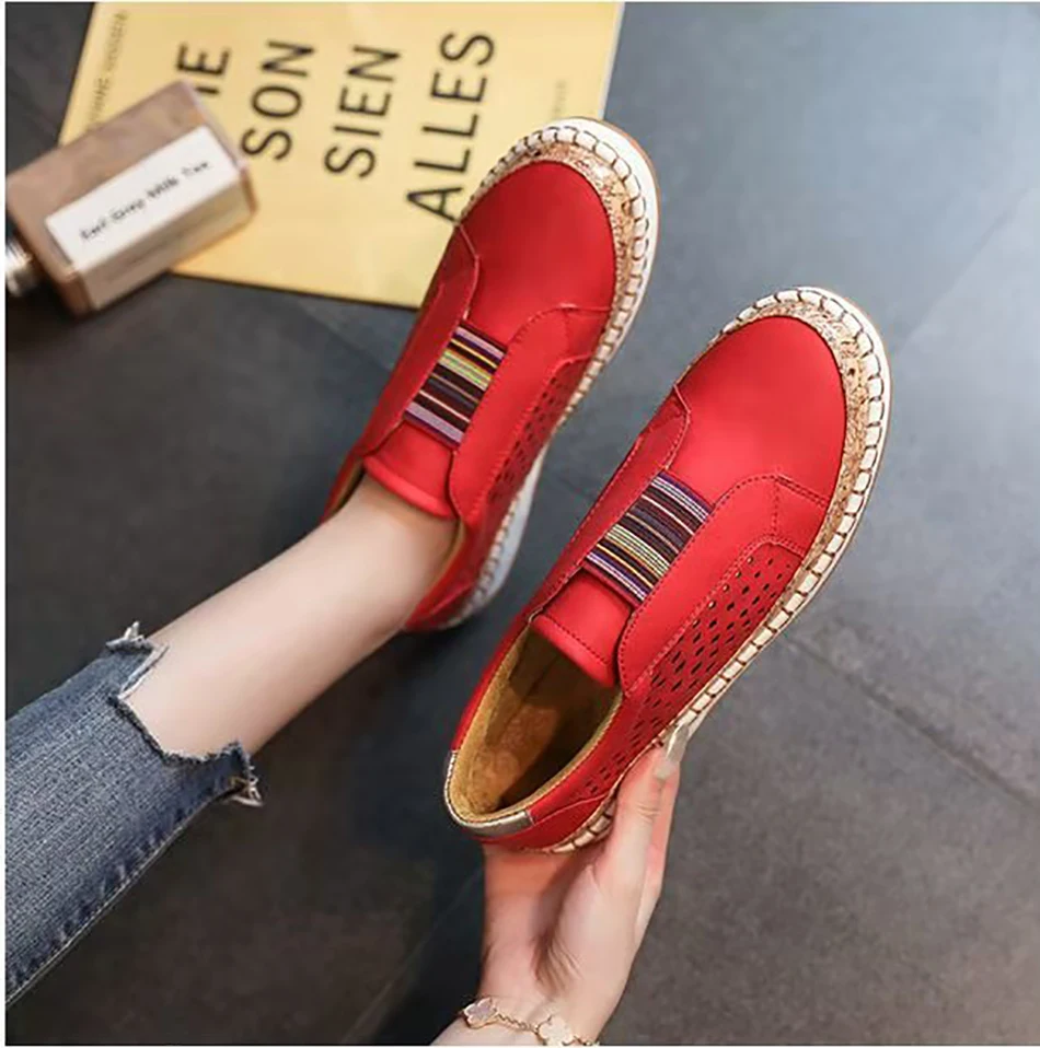 Женские кроссовки из вулканизированной кожи, дышащие, без шнуровки, на плоской подошве, повседневные, для весны, 2021