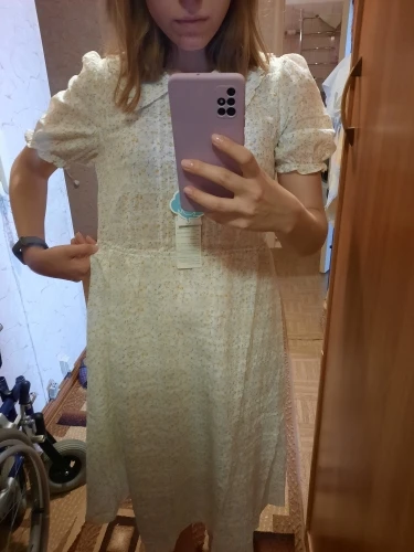 Платье пришло быстро - 11 дней в Нижегородскую область. Качество очень приятное - 100% хлопок, подкладка - 100% вискоза (так написано на самом изделии). На рост 156 талия на месте. Почему поставила 4 звезды: на картинке в линию талии вставлена резинка, она есть и у меня, но совсем ничего не стягивает (своего назначения не выполняет) Получается свободно, но возврат делать не буду.