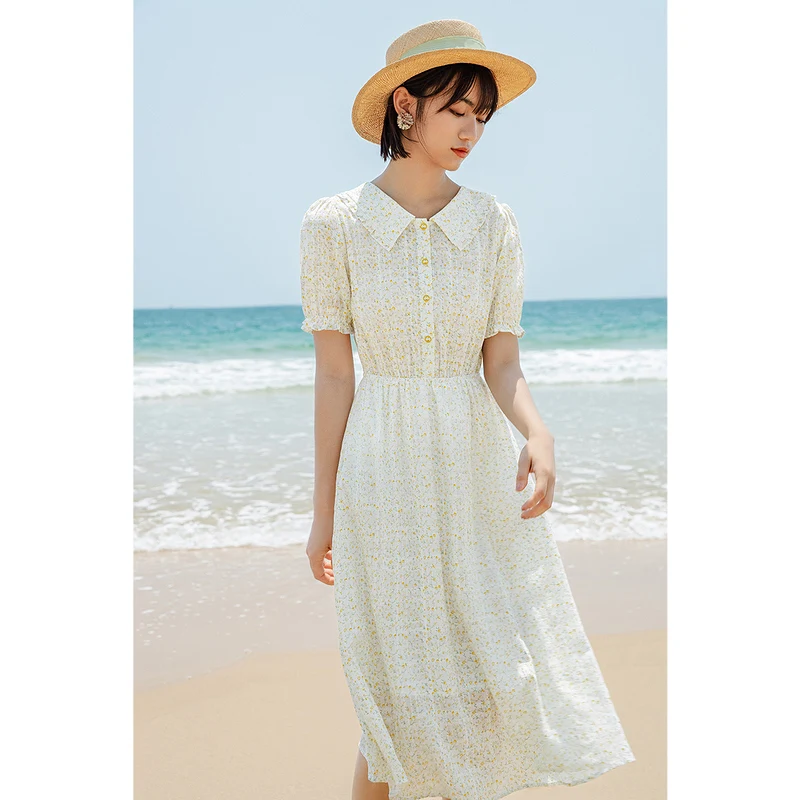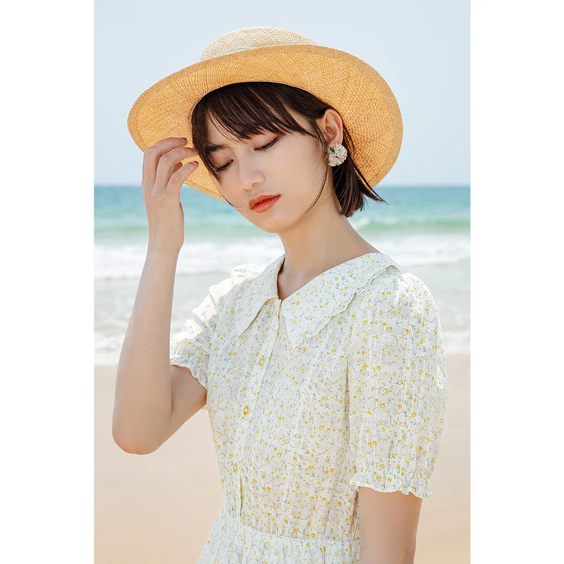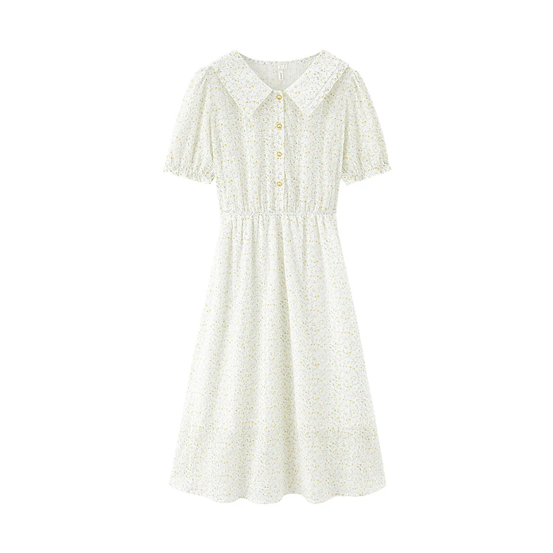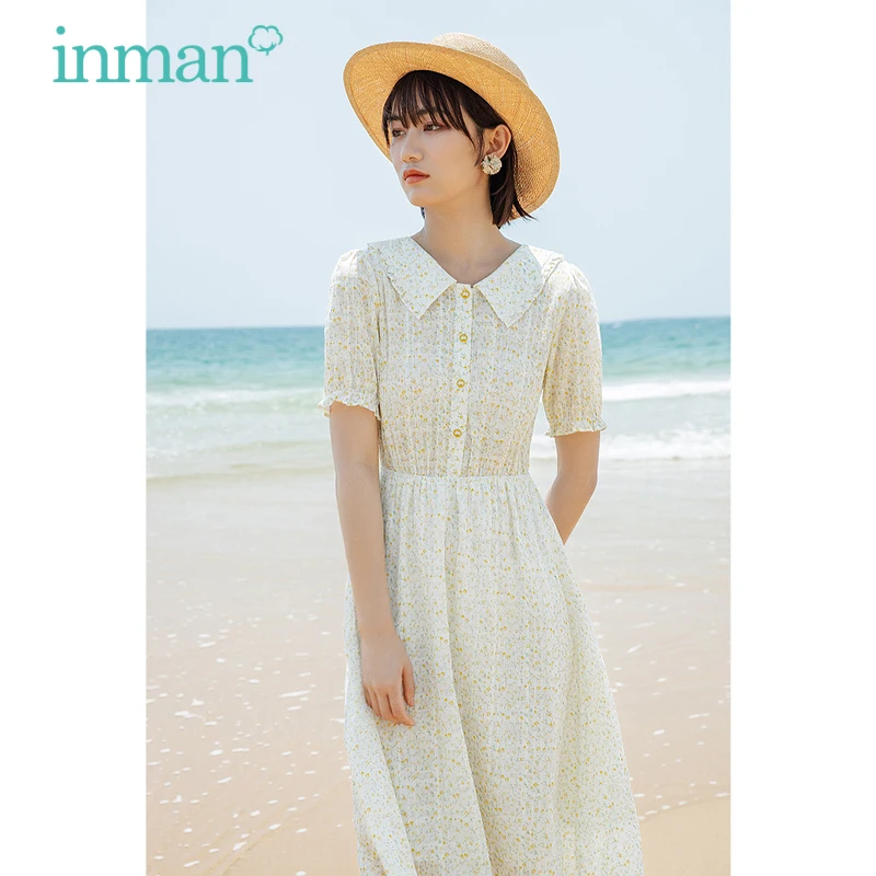 Платье женское жаккардовое с цветочным принтом, милое хлопковое, с лацканами, на пуговицах, сплошное, в клетку, с присборенной талией, лето INMAN