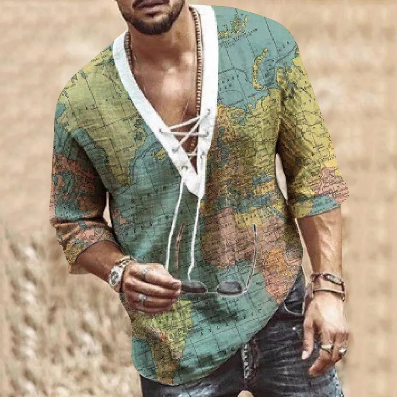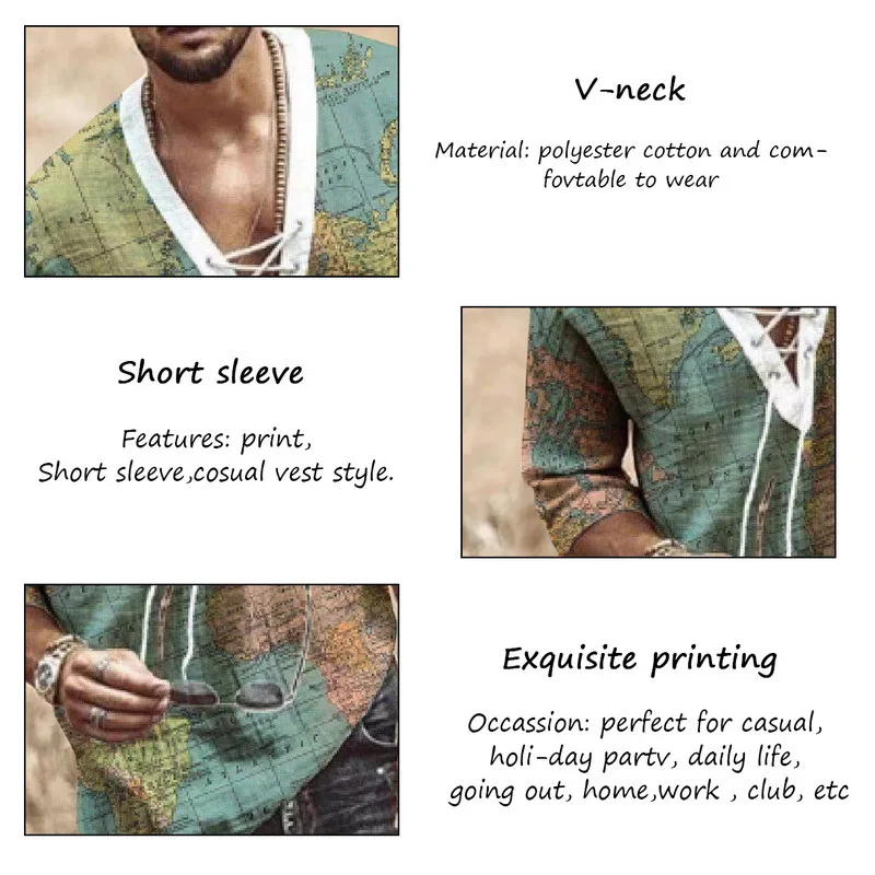 WENYUJH Мужская модная льняная рубашка в стиле хиппи, повседневная, с V-образным вырезом, летняя пляжная свободная футболка, однотонные футболки, новинка 2021