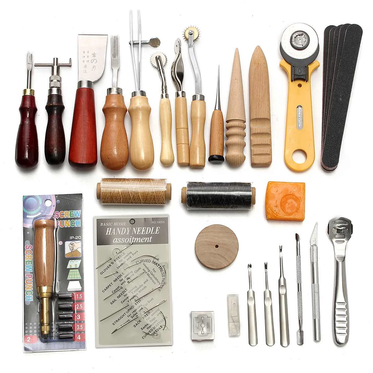 37 шт Профессиональный Кожа ремесло набор инструментов ручная швейная строчка удар резьба работы седло для нарезания "сделай сам" для изготовления набор инструментов