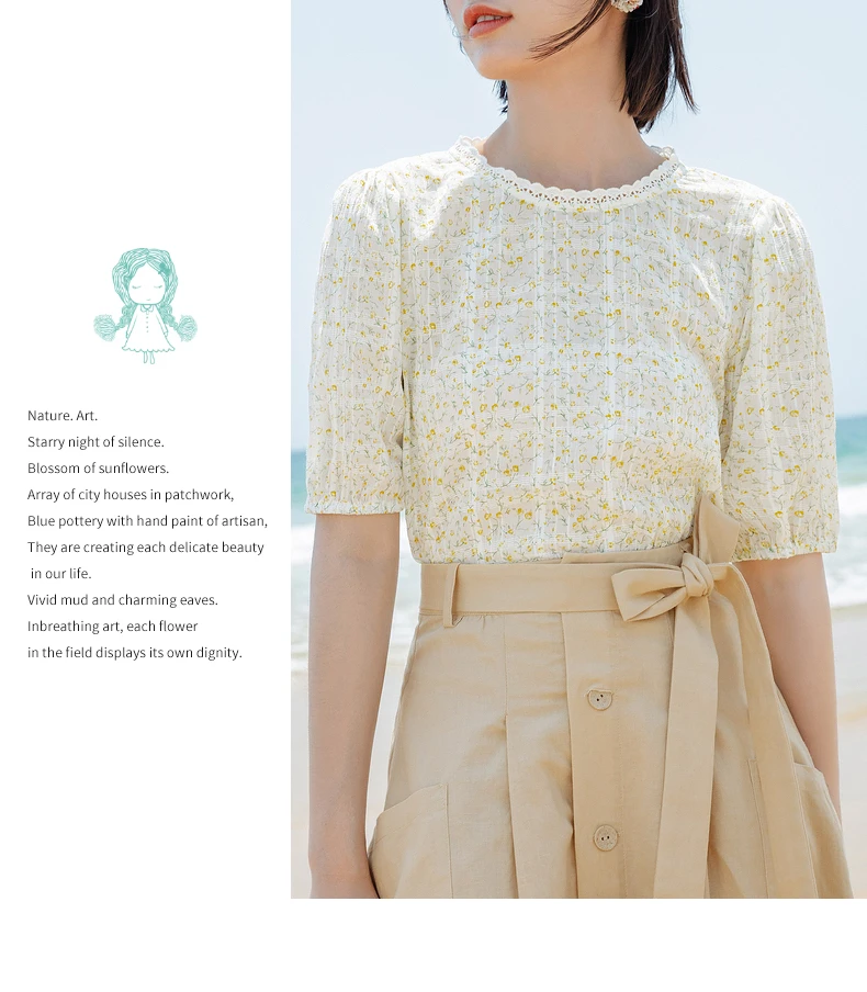 Блузка женская летняя с цветочным принтом, в кукольном стиле