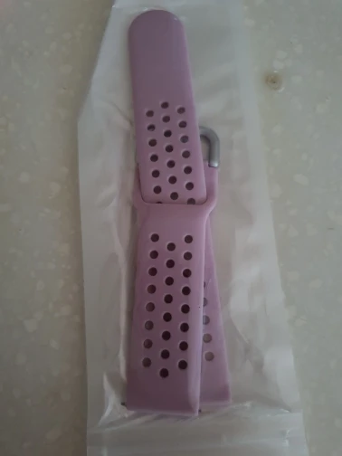ремешок отличного качества, мягкий, удобный, невесомый, на руке не ощущается. смущает только то, что замок не железный, а из пластика. думаю, что серебристая краска вскоре облетит с него. цвет несколько насыщеннее в жизни, чем на фото.
