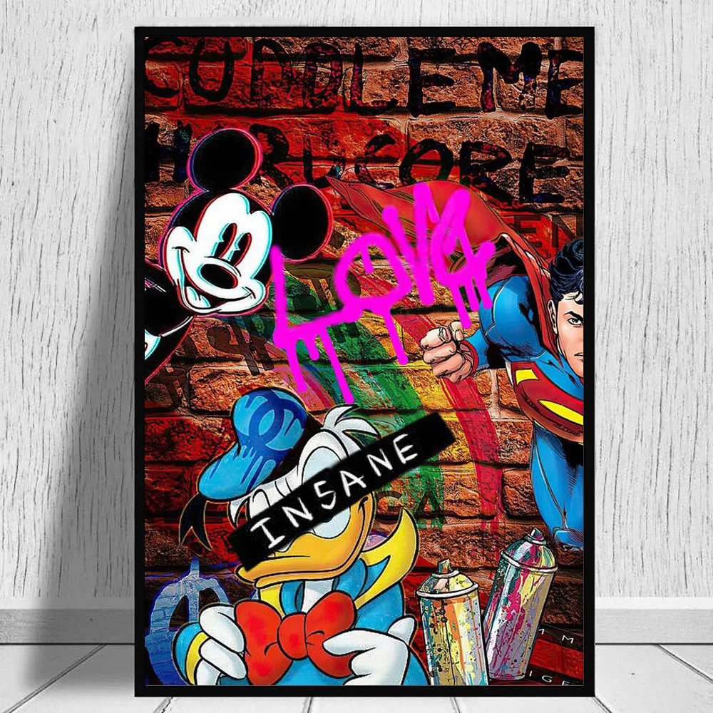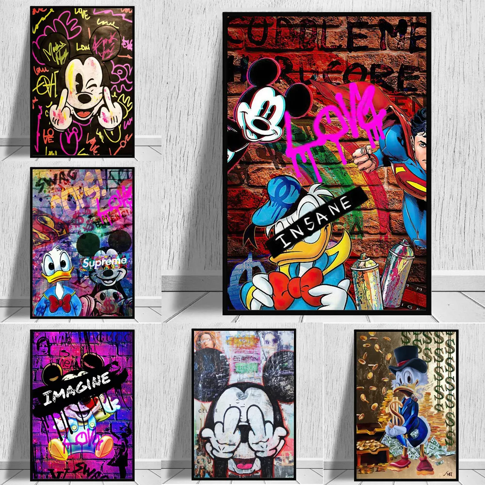 Картина на холсте Disney с изображением граффити Виная Микки Маус и Дональд Дак
