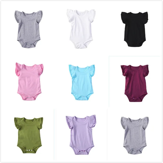 Боди для девочек, хлопковое однотонное, с оборками, с рукавами-крыл...