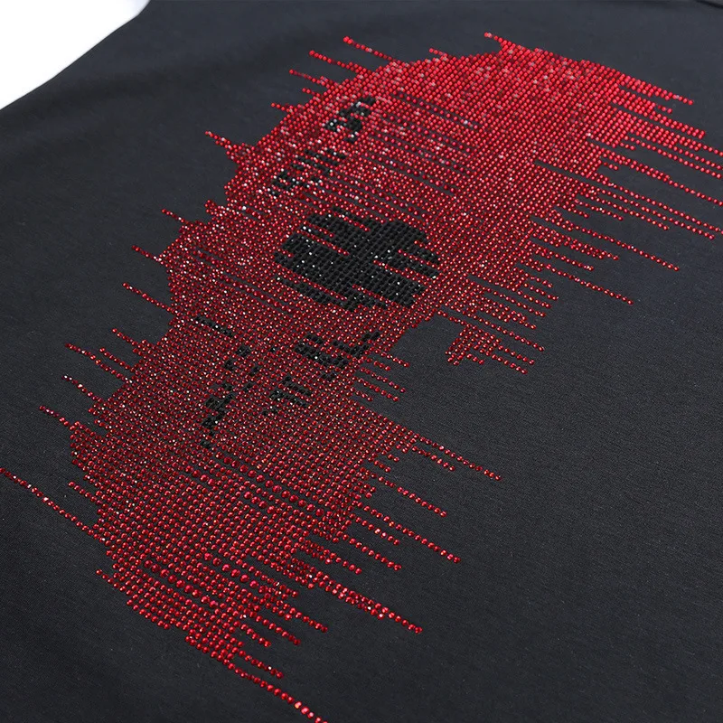 Размера плюс S-5XL 2021 череп стразы футболки Для мужчин брендовая короткий рукав человек уличной моды с круглым вырезом футболки Калаверас Camiseta