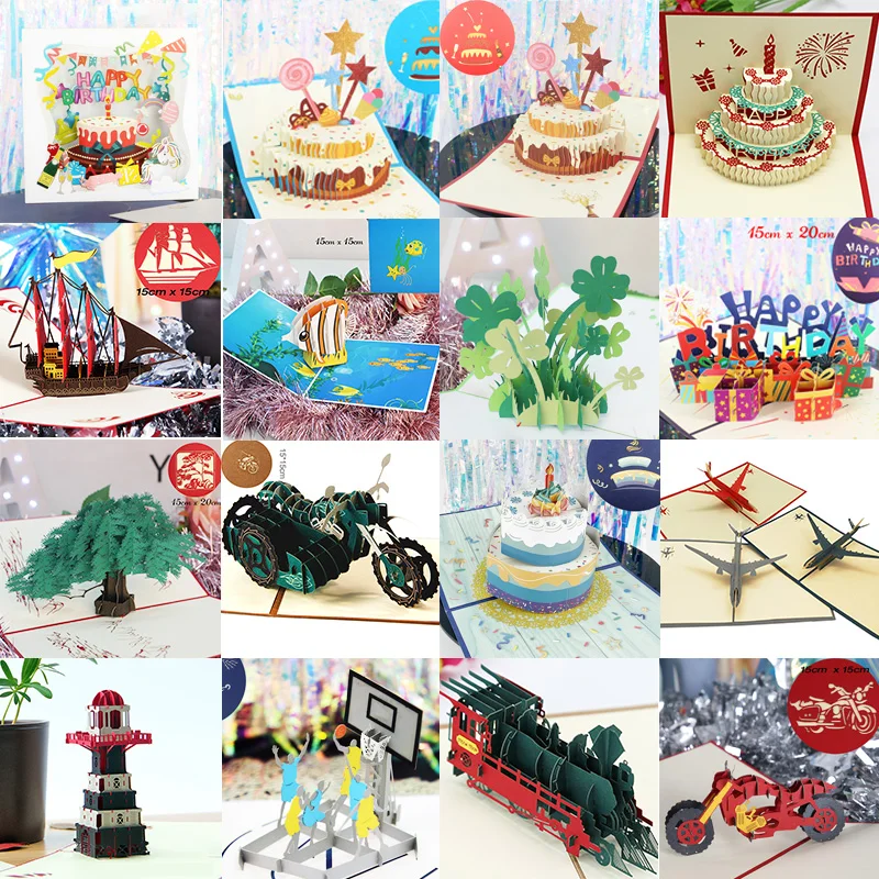 Новые 3D выдвижные приглашения в виде торта на день рождения, поздравительные открытки, детская Подарочная открытка, миниатюрные миниатюры с транспортными средствами, индивидуальная открытка с благодарностью