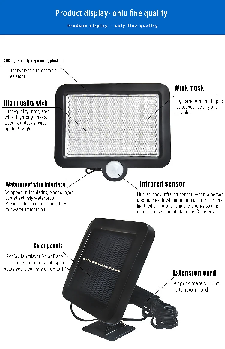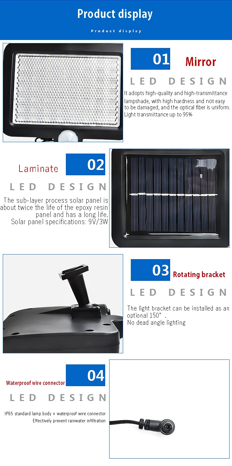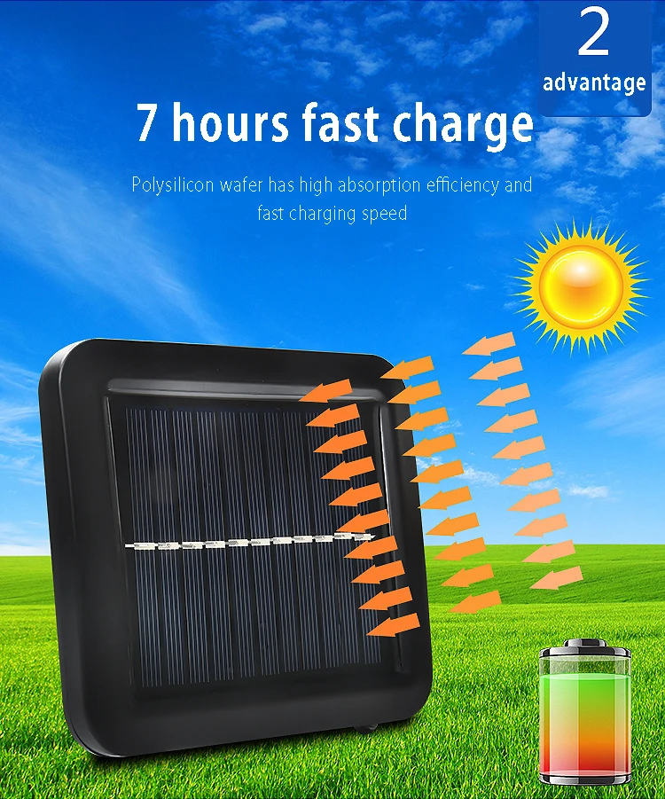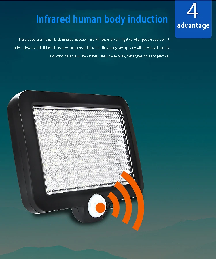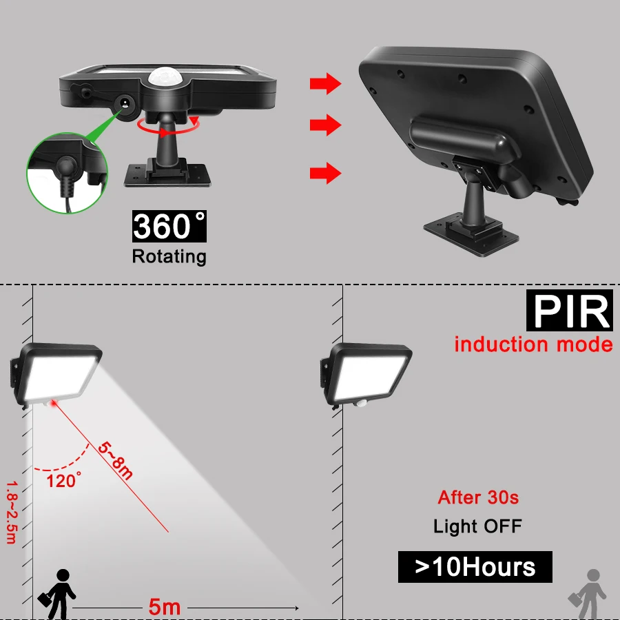 Встроенный датчик движения, этот солнечный светильник на открытом воздухе может быть создан человеком, животными, автомобилями. Расстояние срабатывания 3-5 метров, угол срабатывания 120 °