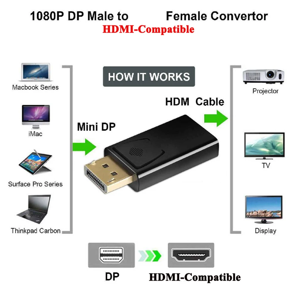 Feature 1DP To HDMI-Compatible Adapter 4K 1080P Audio Cable Converter