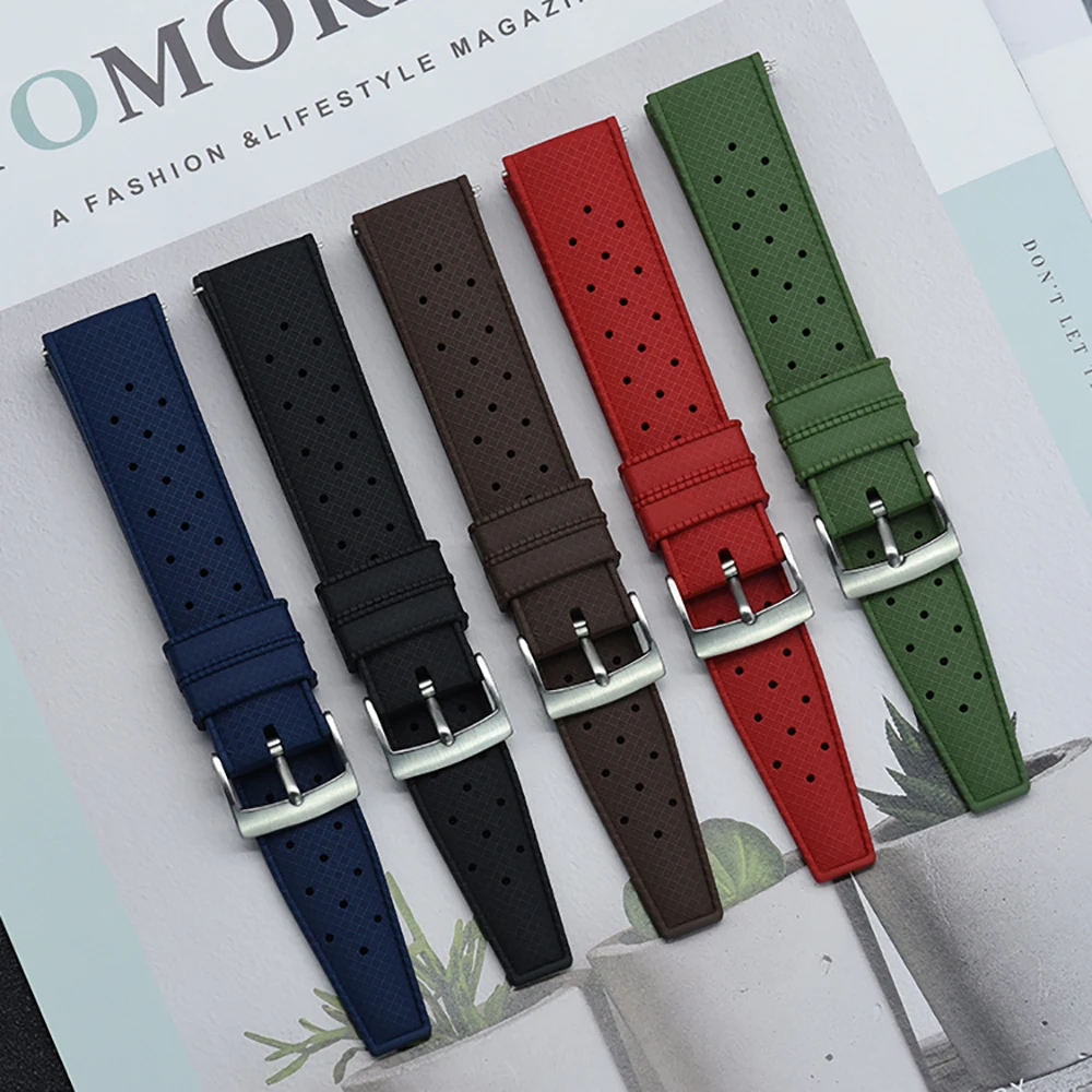 Ремешок тропный резиновый для мужских и женских часов, быстросъемный браслет с серебристойзолотистойчерной кнопкой, аксессуары для часов, 20 мм 22 мм