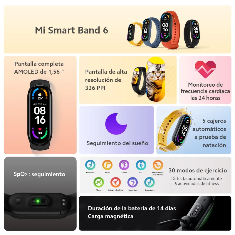 Смарт-браслет Xiaomi Mi Band 6, умный браслет, 5 цветов, AMOLED экран, смарт-браслет Mi Band 6, фитнес-трекер с оксиметром в крови, спортивный браслет