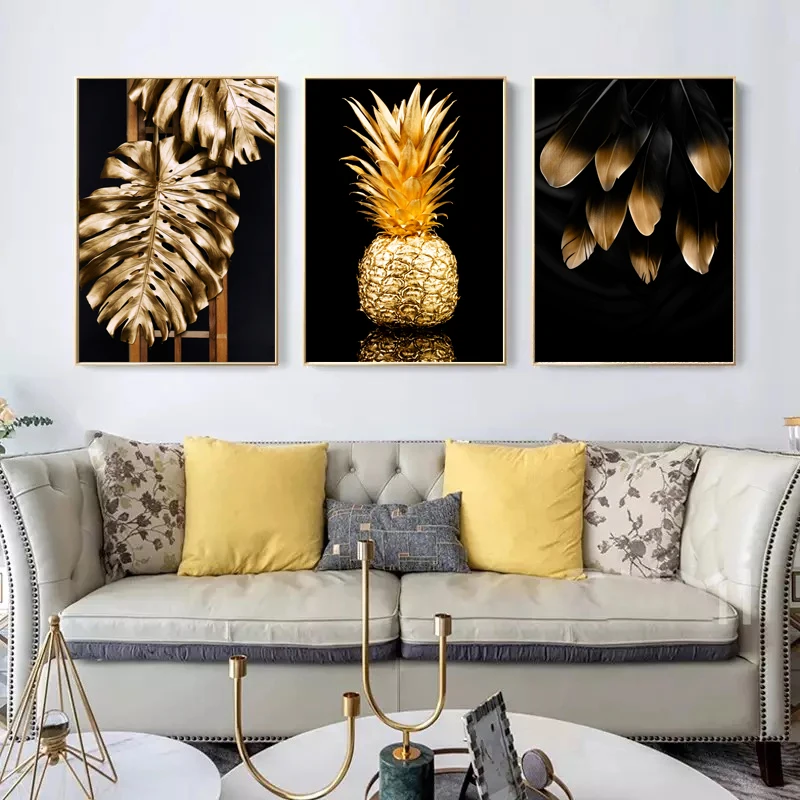 Современная настенсветильник картина в скандинавском стиле с изображением золотого пола и листьев растений