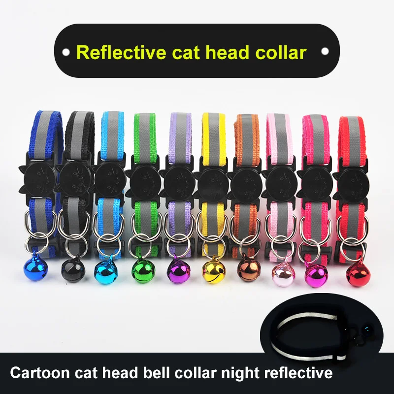 Нейлоновая голова кота из мультфильма собачьих ошейников Цвет колокольчики Светоотражающие кошка собака воротничок товары для животных Безопасность аварийное отсоединение Регулируемый аксессуары для домашних животных