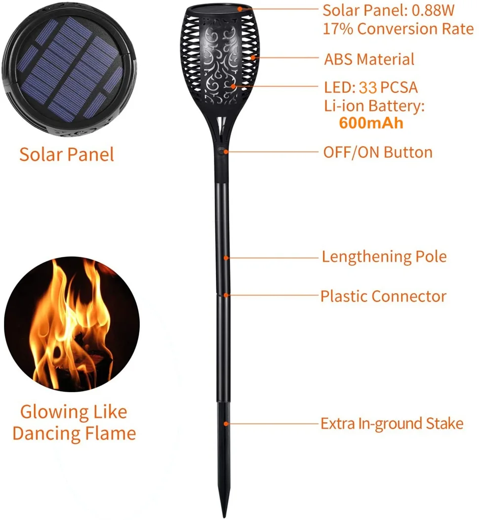 Фонарь светильник на солнечной батарее с мигающим пламенем, IP65 во...