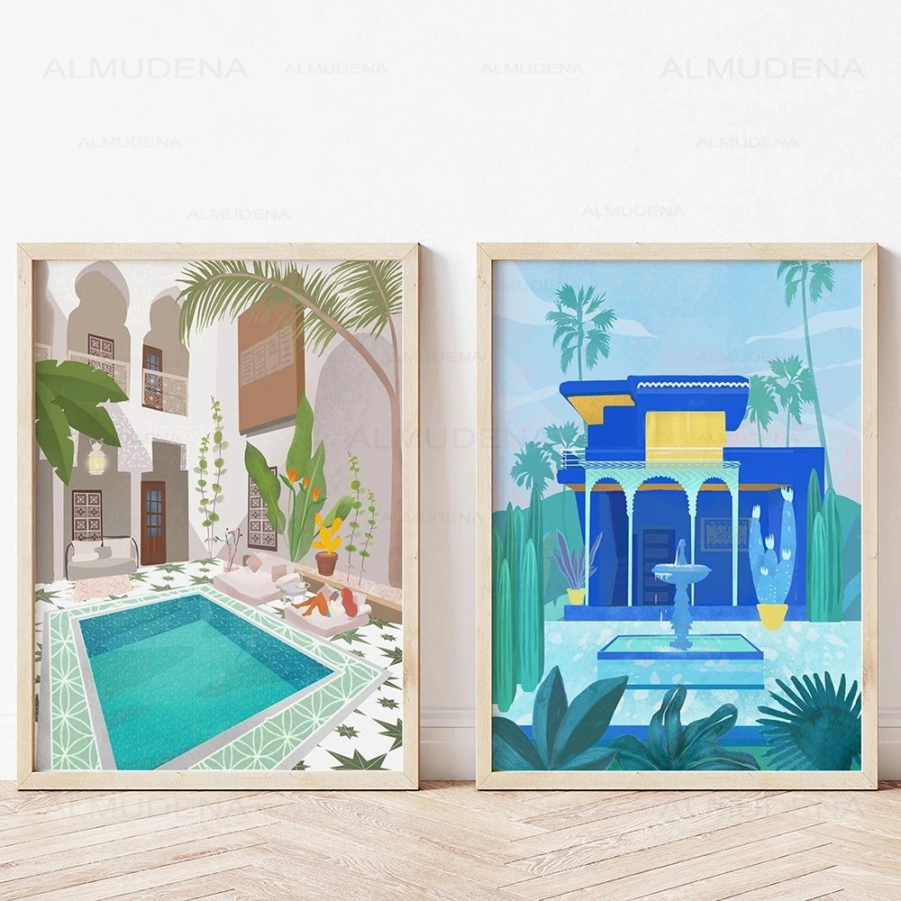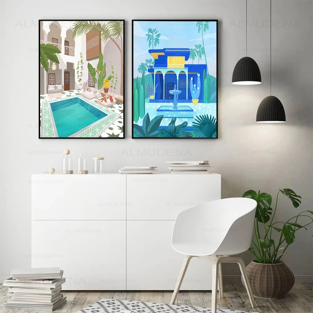 Марокканские настенные художественные принты, дорожные плакаты, Марракеш Riad Jardin Majorelle, пейзаж, холст, живопись, скандинавские настенные картины, домашний декор