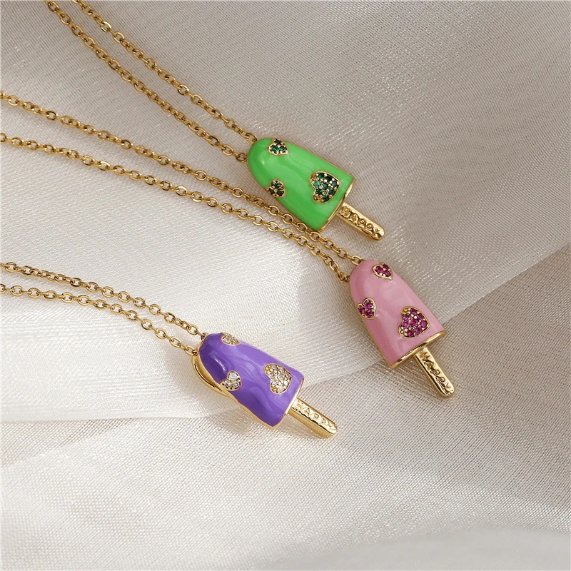 HECHENG, Женское Ожерелье Подвеска мороженое, ожерелье-чокер золотого цвета, цветное Радужное летнее ювелирное изделие