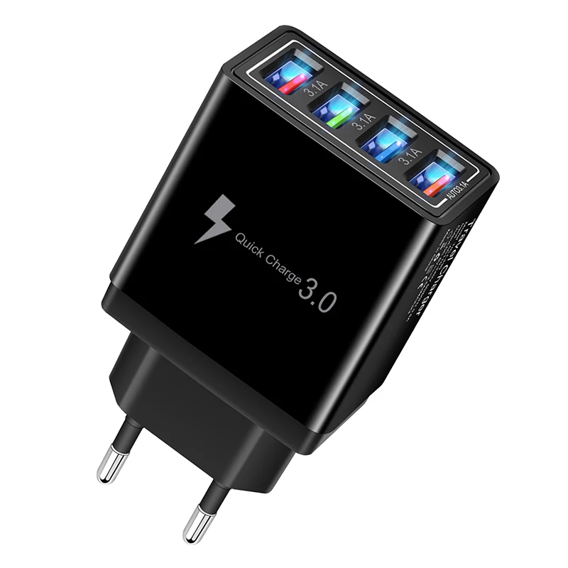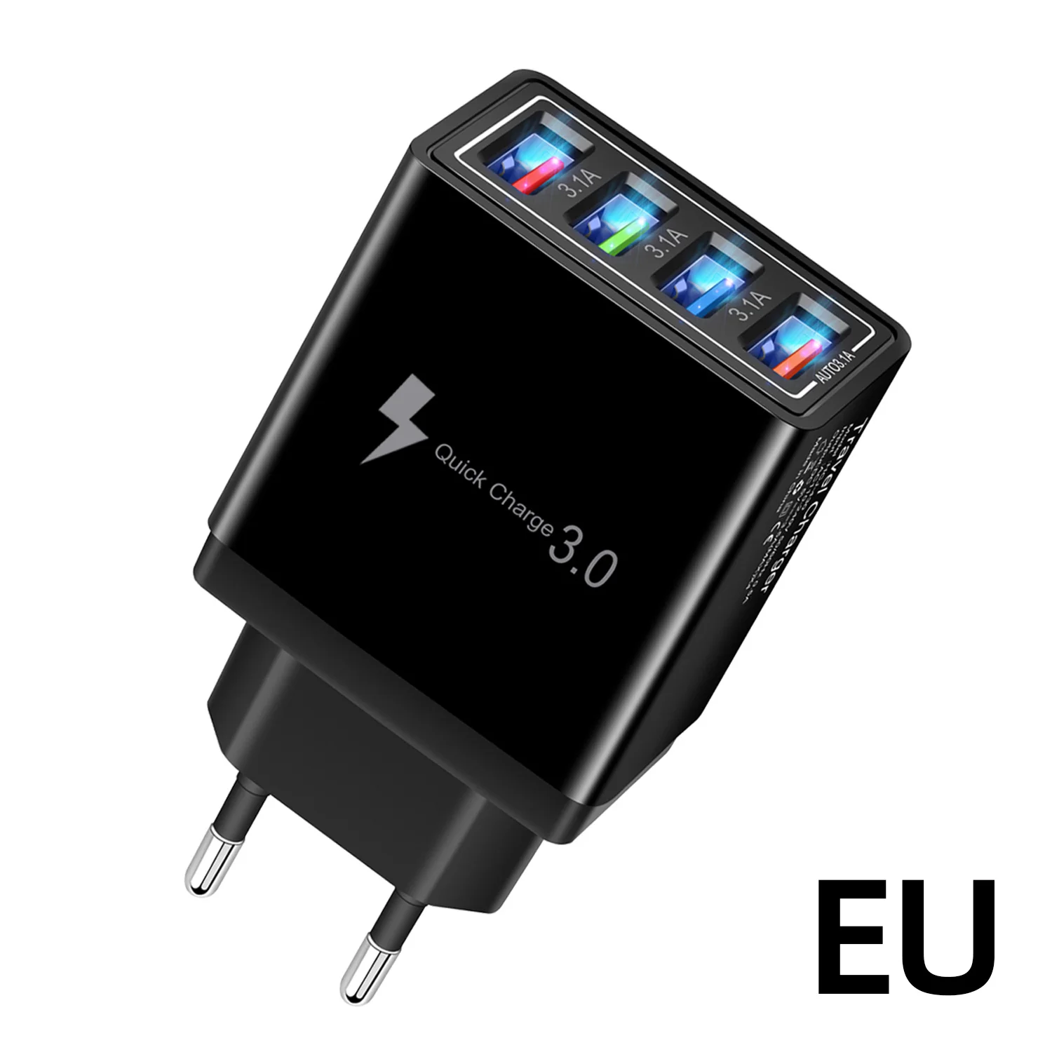 Адаптер питания с 4 USB-портами для быстрой зарядки, дорожное заряд...