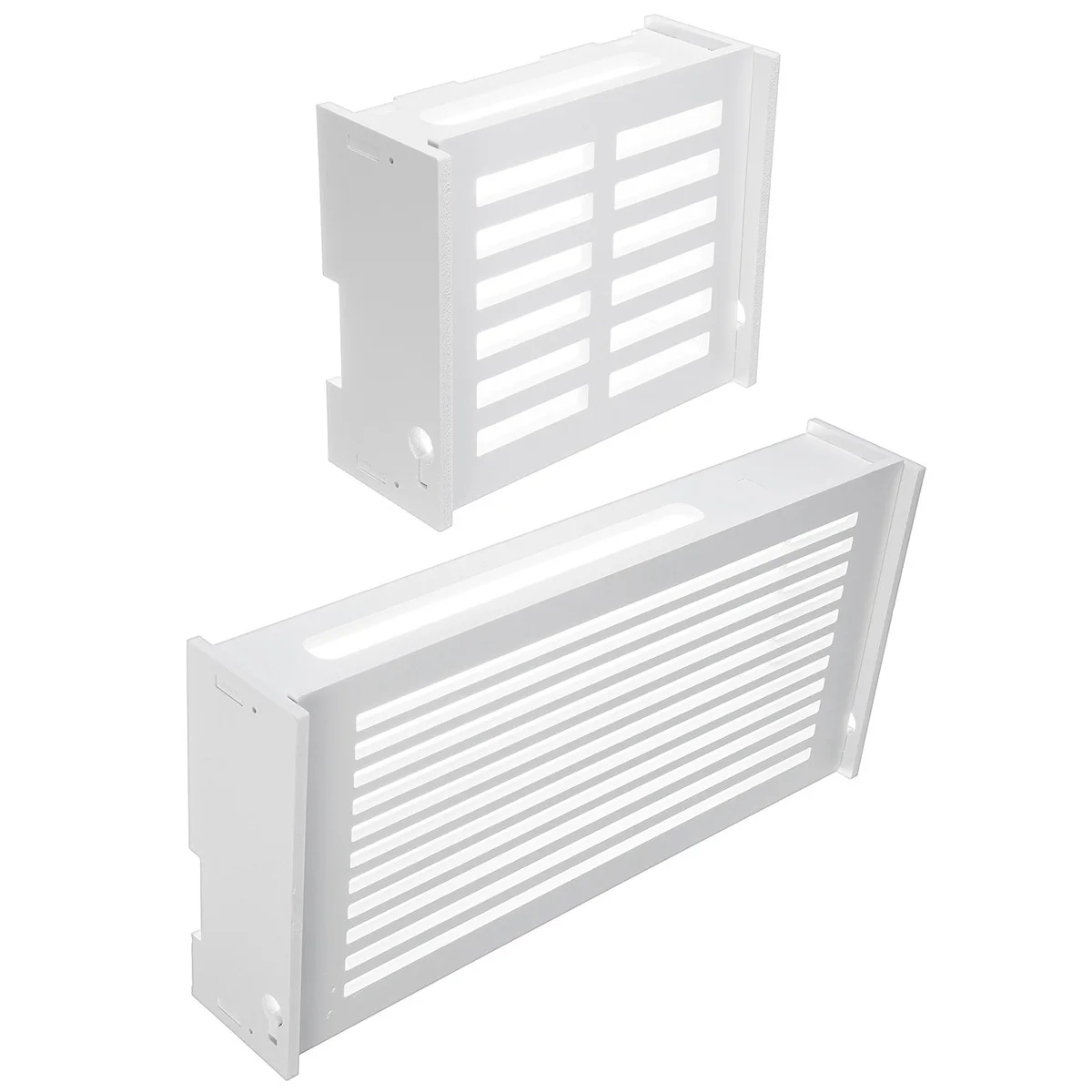 〖Features〗Идеально подходит для домашнего или офисного использования.Дизайн стильный внешний вид, тонкое мастерство.Идеально подходит для маршрутизатора, силовой ленты, шнуров, адаптеров, хранения орнаментов, настенного монтажа, экономии пространства.Водонепроницаемый! Защита от плесени! Экологически изготовлено из древесно-пластиковой пластины, новые композитные материалы.Он разработан с отличной производительностью рассеивания тепла, и его крышка удобна для снятия, обеспечивая действительно практичное использование