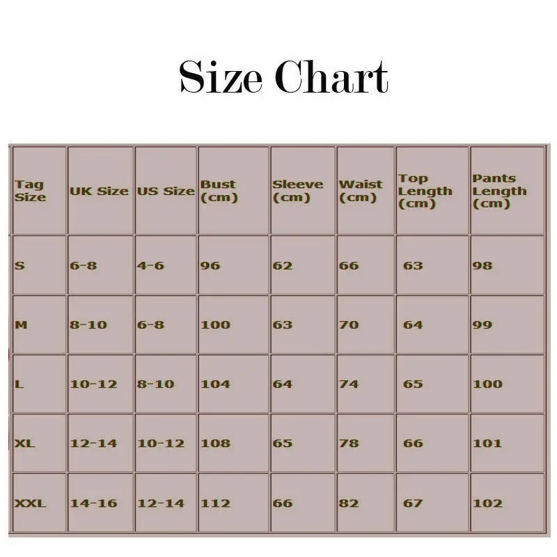 XL Длина: 66 Бюст: 108 Рукав: 65 Длина брюк: 101 Талия: 78 США: 10-12 Великобритания: 12-14