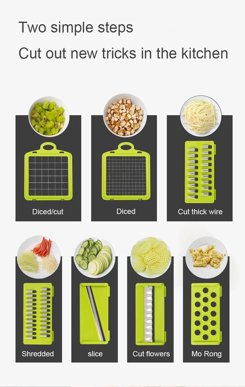Многофункциональный измельчитель для овощей, измельчитель, стальное лезвие, слайсер для картофеля, нарезки фруктов, терка для моркови, кухонные аксессуары