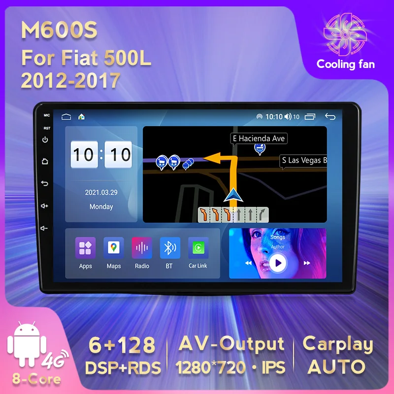 Автомобильная Мультимедийная система Carplay DSP IPS DSP 4G LTE, автомагнитола под управлением Android 10,0 для Fiat 500L 2012-2017, с Wi-Fi, с поддержкой Bluetooth и видеоплеером, типоразмер 2 din