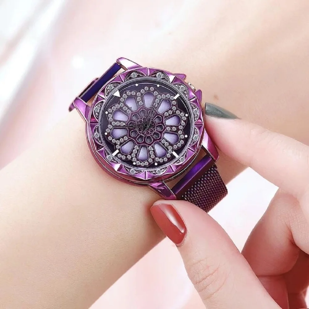 Часы с вращающимся звездным небом для удачи браслет из нержавеющей стали с магнитной сеткой женские модные брендовые часы со стразами Reloj Mujer