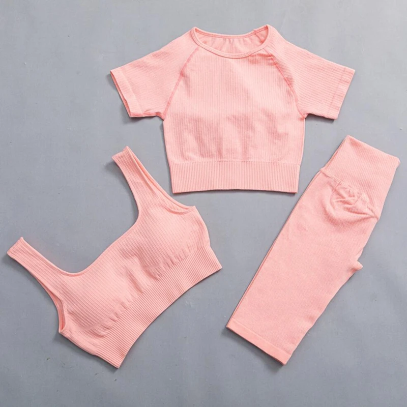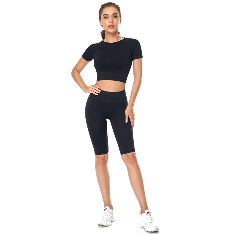 Костюм спортивный женский бесшовный для фитнеса, топ и шорты с высокой талией