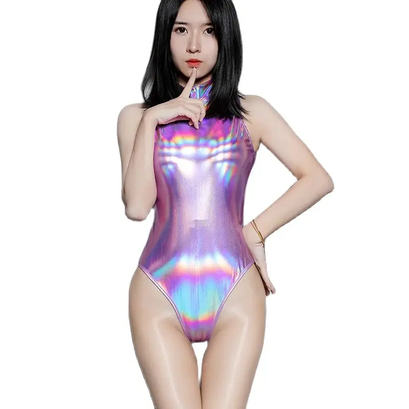 С мокрым эффектом Лазерная ПВХ комбинезон с высоким разрезом боди-с...