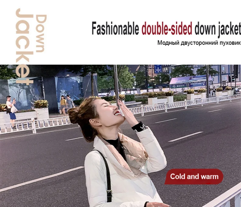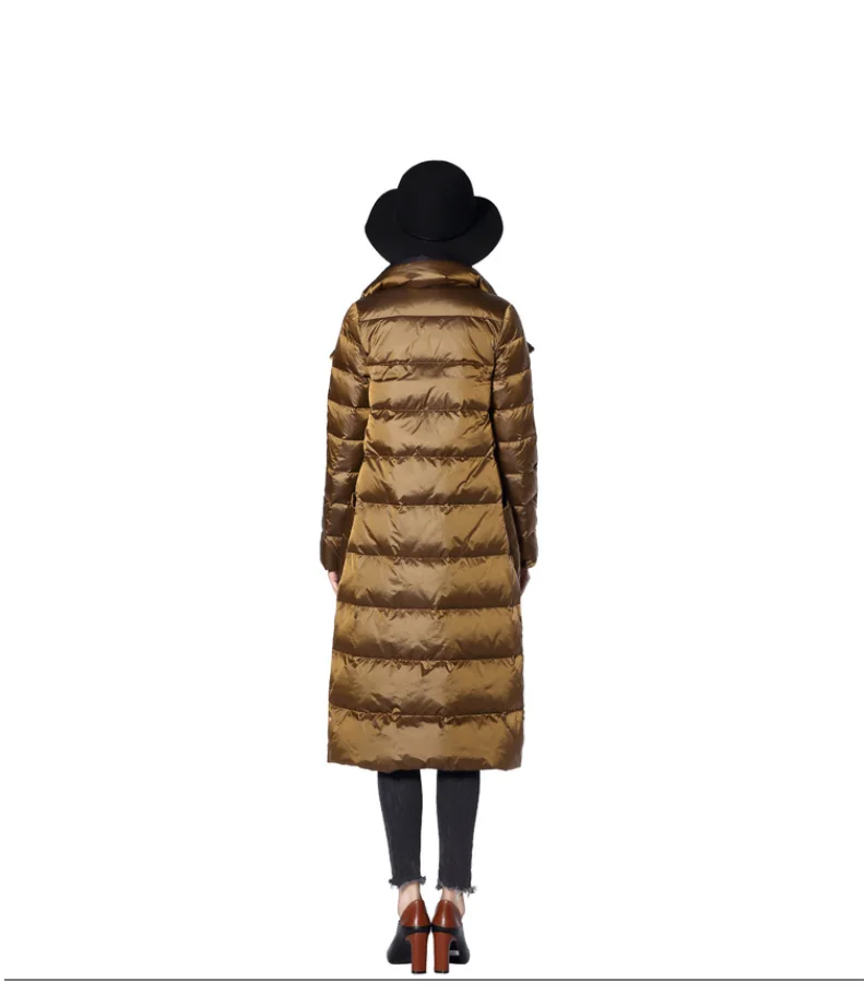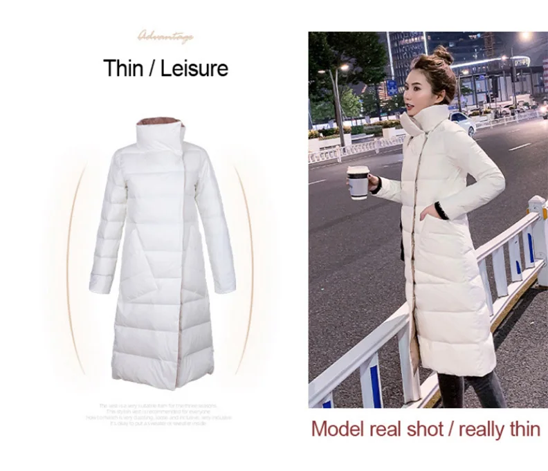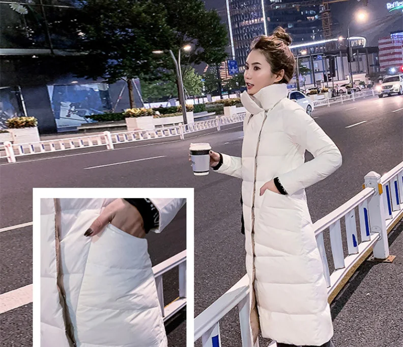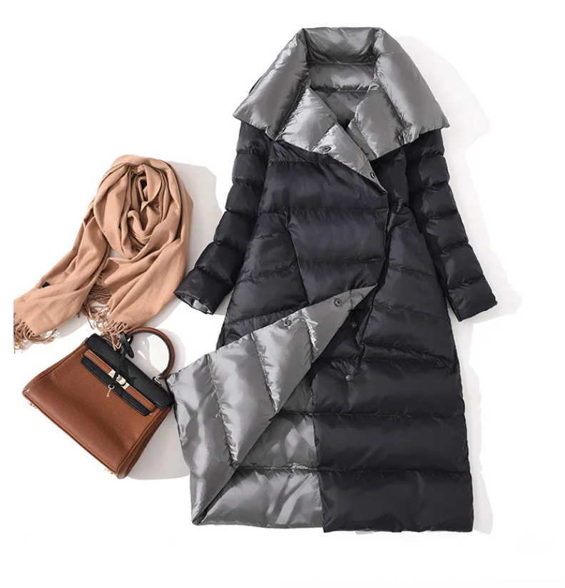 Женский Двухсторонний пуховик, Длинная зимняя куртка с высоким воротником, пальто на белом утином пуху, двубортные теплые парки, зимняя верхняя одежда