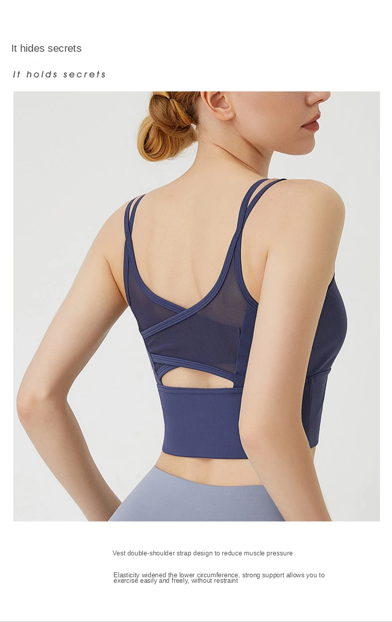 Стиль жилета, дизайн с двойным плечевым ремнем, снижает мышечное давлениеСильное расширение нижней стены, сильная несущая способностьТак что вы можете легко тренироваться, без ограничений