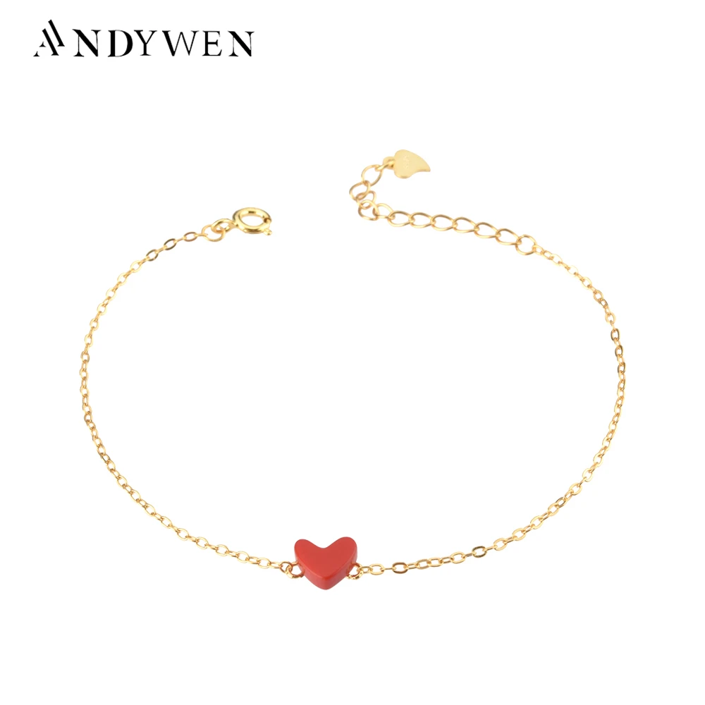 Женский браслет-цепочка с кристаллами ANDYWEN, из стерлингового серебра 925 пробы, с золотым и красным сердцем, свадебное Ювелирное Украшение 2021