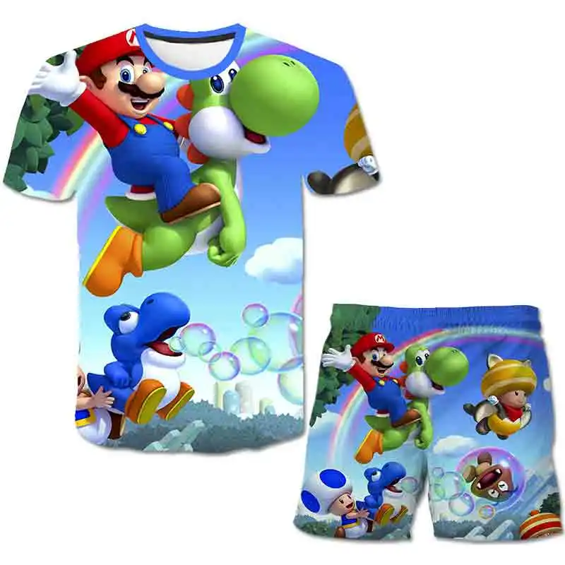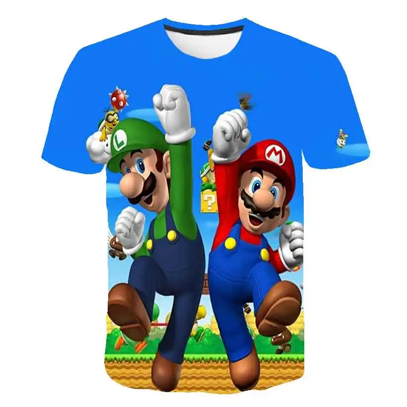 Футболки с мультипликационным принтом Марио-Брос, Короткие штаны для маленьких мальчиков, детская одежда, Короткие штаны для мальчиков, детская одежда, топы с коротким рукавом для девочек, футболка для детей