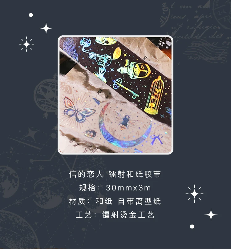 3 см * 3 м Лазерная бронзовая васи лента космическая планета бабочка Медуза пуля Журналистские аксессуары DIY декоративные наклейки в эстетике