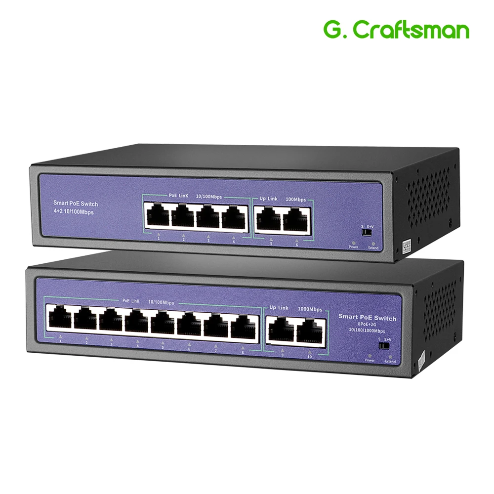 4 + 2 8 + 2 Мбитс порт Poe коммутатор Поддержка порта IEEE802.3afat для CCTV 5 Мп 8 Мп IP-камеры беспроводной AP GCraftsman