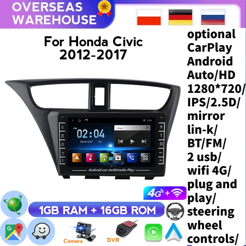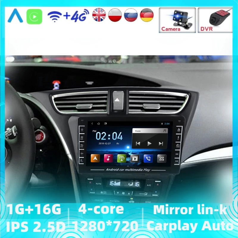 Автомагнитола с Wi-Fi и GPS-навигацией для HONDA Civic Hatchback 2013, Android 8,1