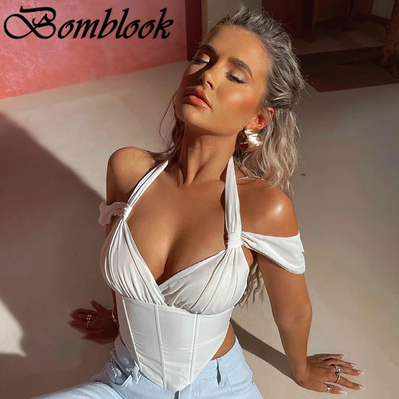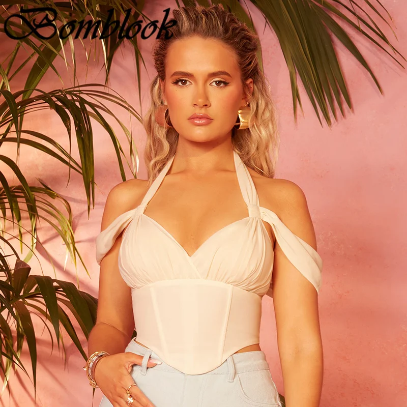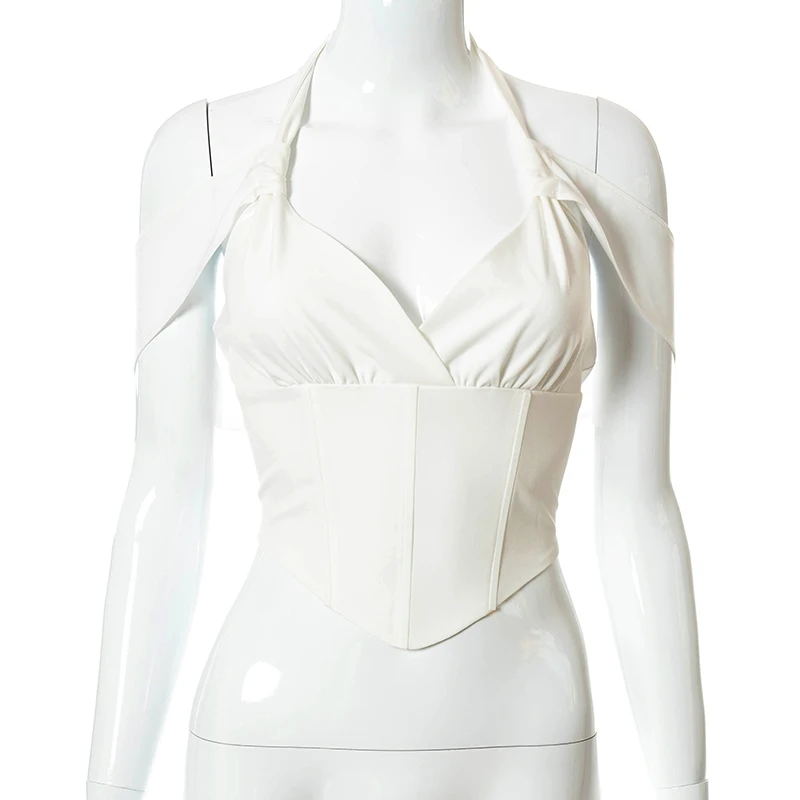 Сексуальная летняя одежда для вечевечерние НКИ клуба для женщин 2021 года с лямкой на шее и открытой спиной на молнии Y2K Корсет Топ женская уличная одежда