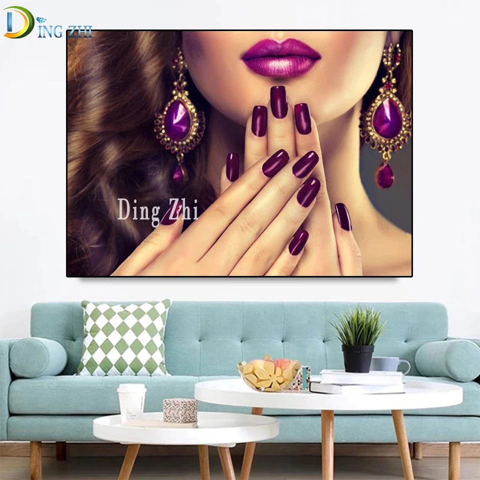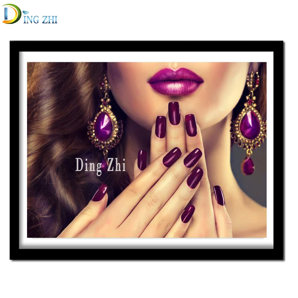 Алмазная мозаика фиолетовая для украшения ногтей Сделай Сам алмазная живопись Вышивка нежная женщина, сексуальные губы салон картина квадратная круглая дрель Декор