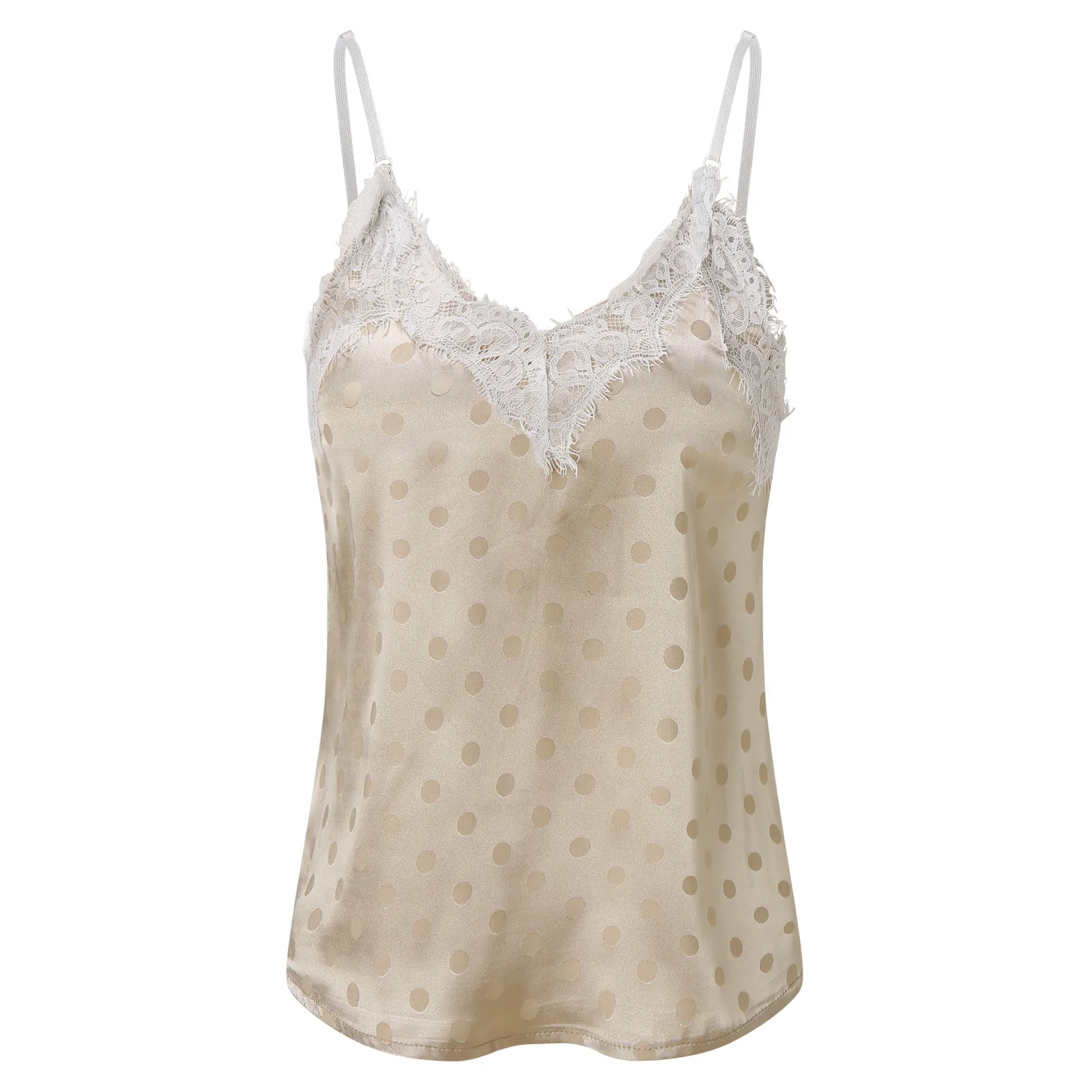 Майка женская атласная в горошек, модный кружевной топ с лямкой на шее, пикантная Дамская кофта с V-образным вырезом, летняя Клубная одежда